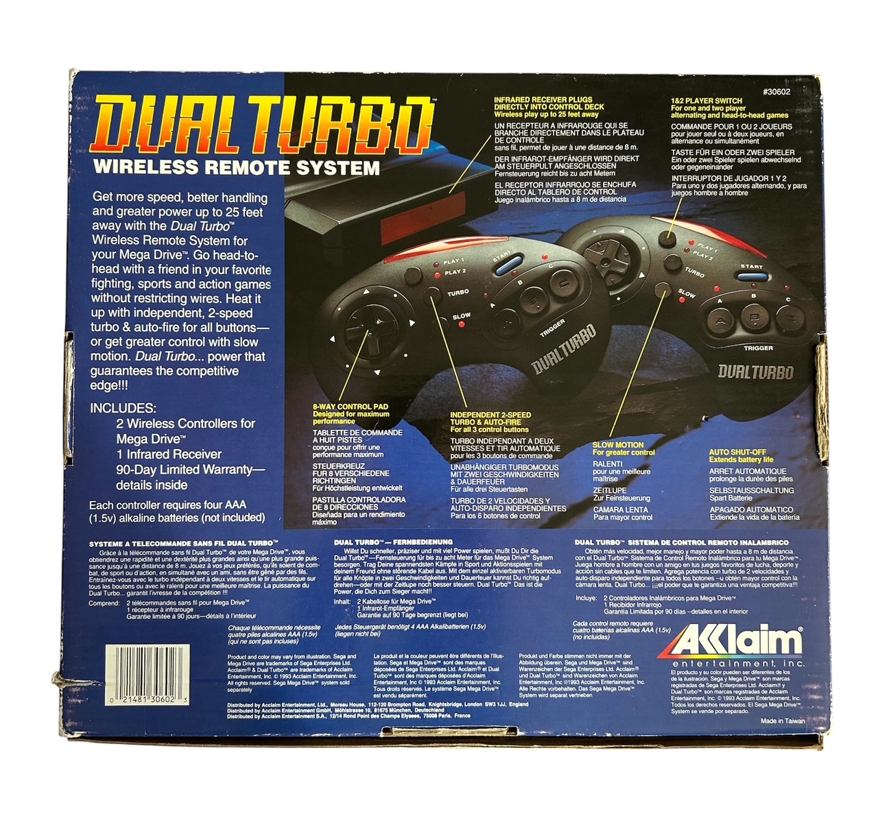 Acclaim Dual Turbo Infrarot Wireless Controller für SEGA Mega Drive 1 & 2 (OVP) TOP ZUSTAND