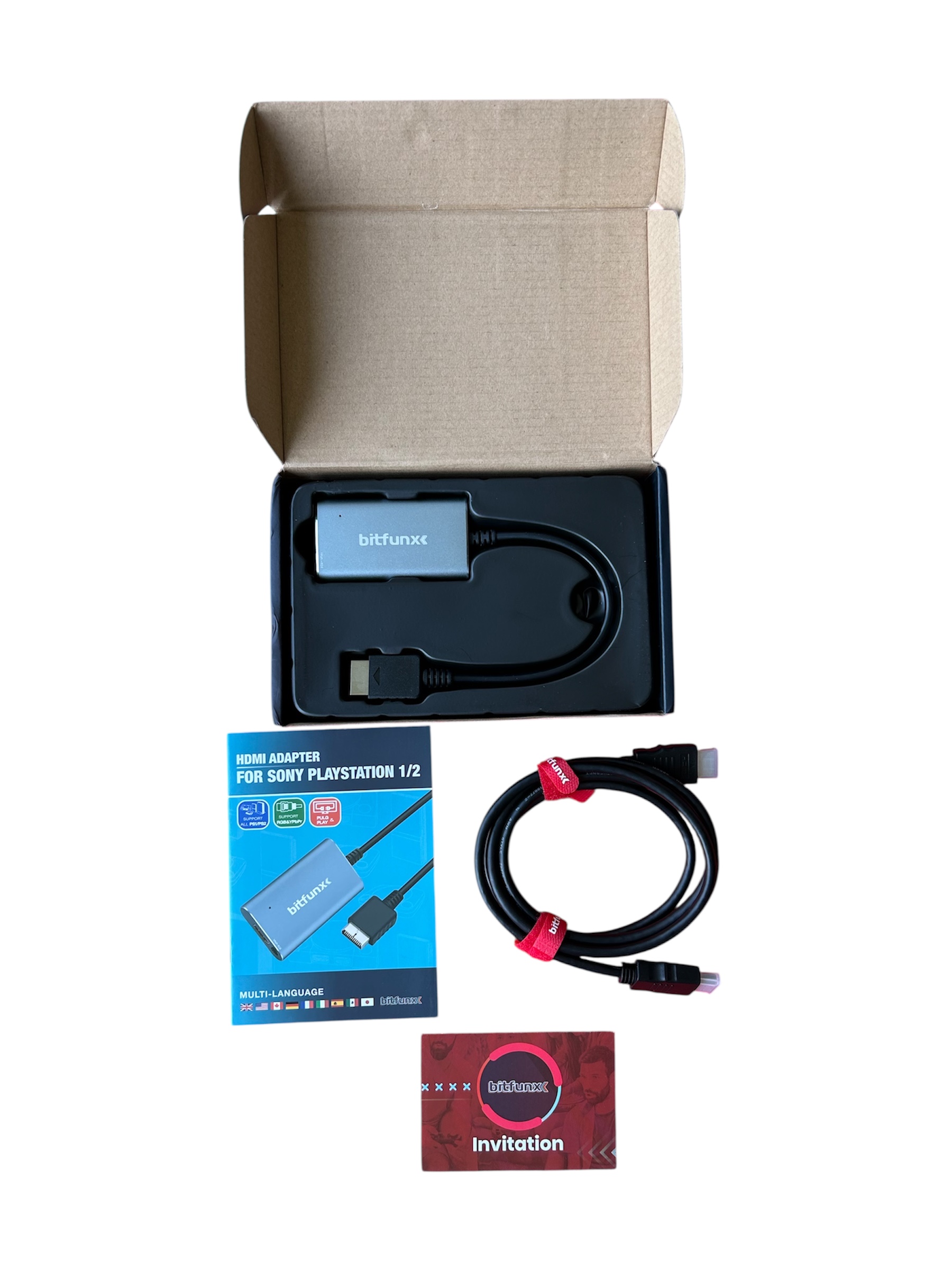 Bringe deine PlayStation 1 oder 2 in die HD-Ära! Der Bitfunx HDMI Adapter ermöglicht es dir, deine Retro-Konsolen an moderne HDMI-fähige Fernseher und Monitore anzuschließen ohne komplizierte Einstellungen oder zusätzliche Kabel!