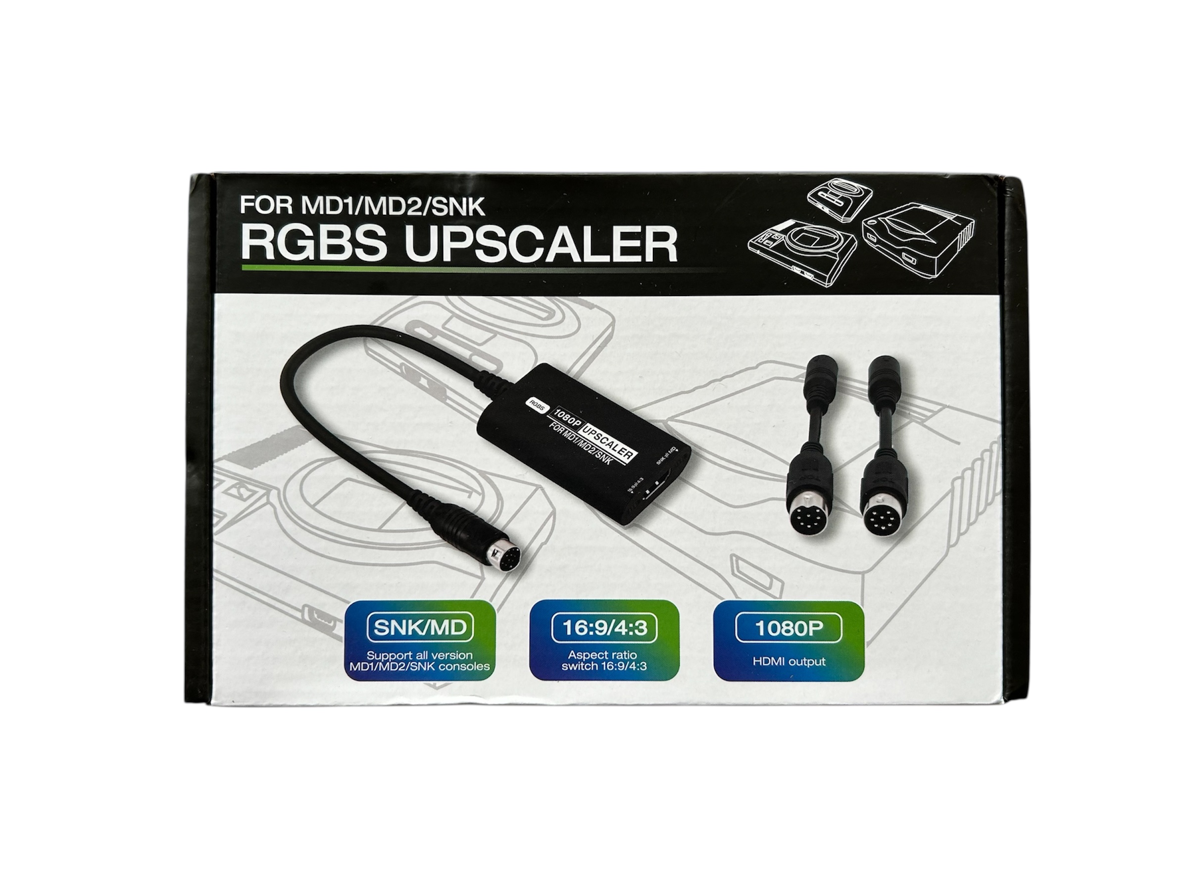 Lieferumfang: HDMI Adapter, Anschlusskabel (MD 1& 2 / Neo Geo), HDMI-Kabel