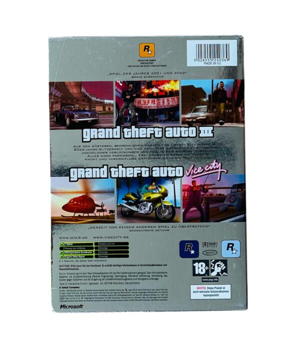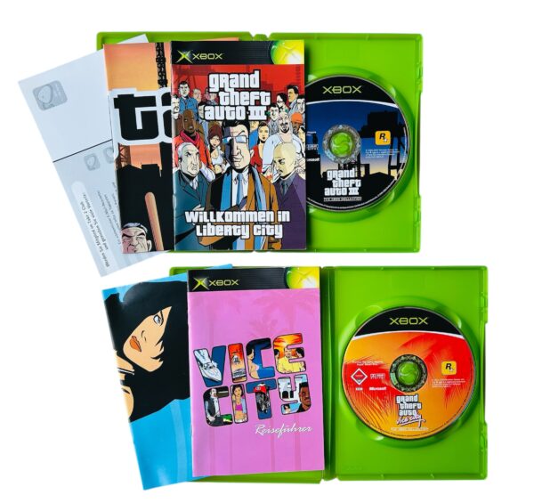 Das Grand Theft Auto: Doppelpack für die Original-Xbox ist eine Spielesammlung, die zwei ikonische Titel der GTA-Reihe enthält: