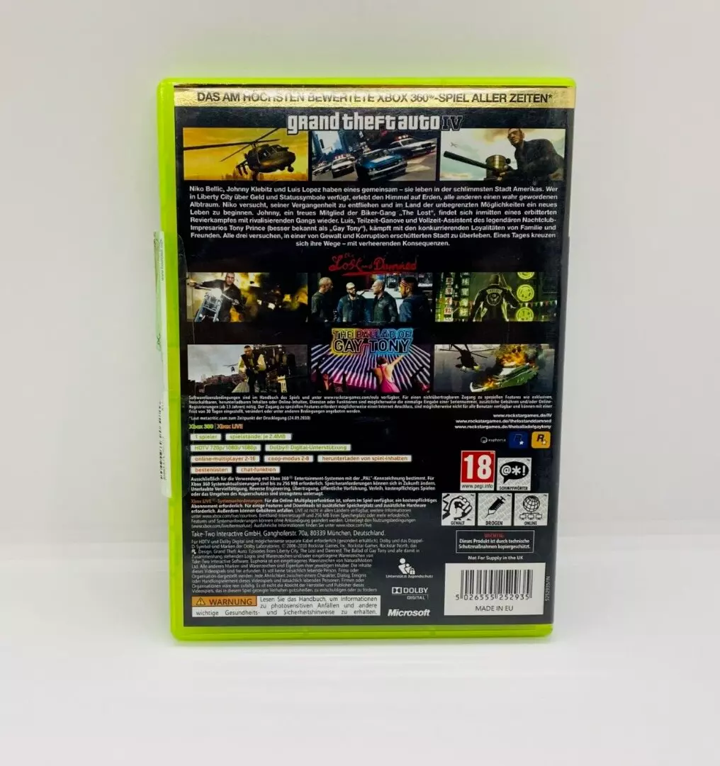 Mit drei miteinander verwobenen Storylines, einer offenen Spielwelt, intensiver Atmosphäre und tiefgehenden Charakteren bietet GTA IV: The Complete Edition ein umfassendes und abwechslungsreiches Spielerlebnis auf der Xbox 360 ideal für Fans von Action, Storytelling und Open-World-Games.