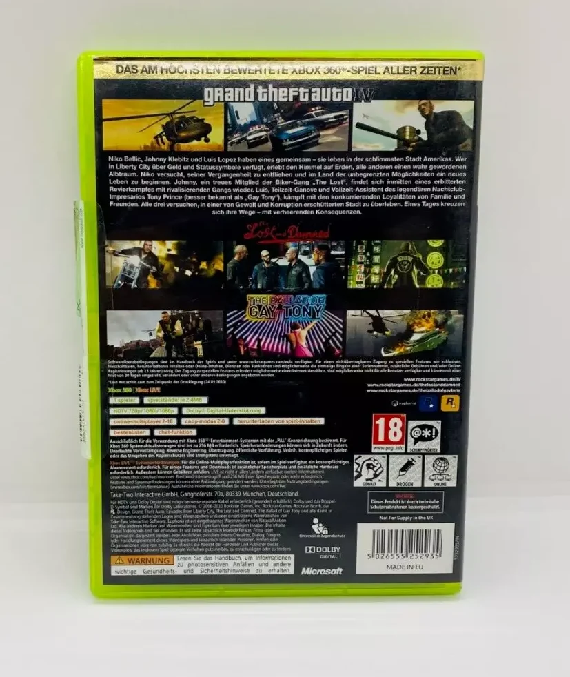 Mit drei miteinander verwobenen Storylines, einer offenen Spielwelt, intensiver Atmosphäre und tiefgehenden Charakteren bietet GTA IV: The Complete Edition ein umfassendes und abwechslungsreiches Spielerlebnis auf der Xbox 360 ideal für Fans von Action, Storytelling und Open-World-Games.