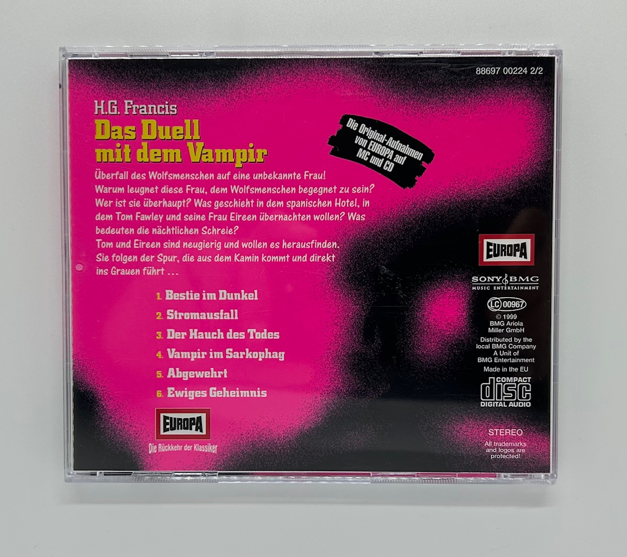 Das Duell mit dem Vampir, ist die sechste Folge aus der Hörspielreihe Gruselserie von H.G. Francis. Die Serie war in den 1980er Jahren sehr populär und wurde unter anderem von Europa, einem bekannten Label für Hörspiele, produziert. „Das Duell mit dem Vampir“ erschien erstmals 1981 und gehört zur ersten Staffel dieser Reihe, die sich auf unheimliche und übernatürliche Geschichten fokussiert.