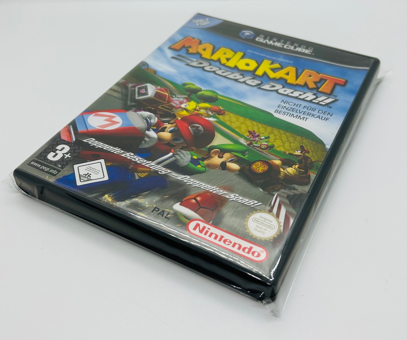 Mario Kart Double Dash!! ist ein exklusives Rennspiel für den Nintendo GameCube, das 2003 erschien. Es bietet ein einzigartiges Koop-Feature, bei dem zwei Fahrer pro Kart zusammenarbeiten einer steuert, der andere nutzt Items. Das Spiel überzeugt mit farbenfrohen Strecken, ikonischen Charakteren aus dem Nintendo-Universum und actiongeladenem Multiplayer-Spaß.
