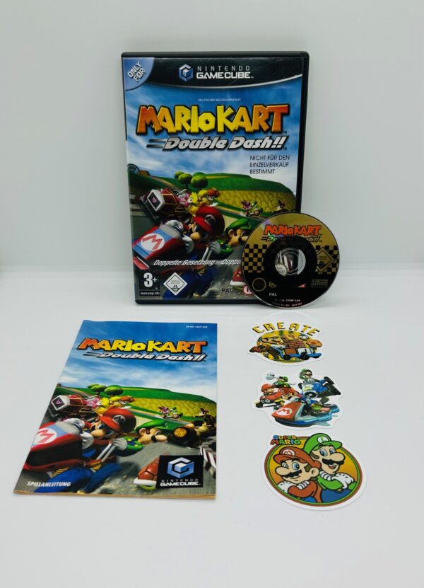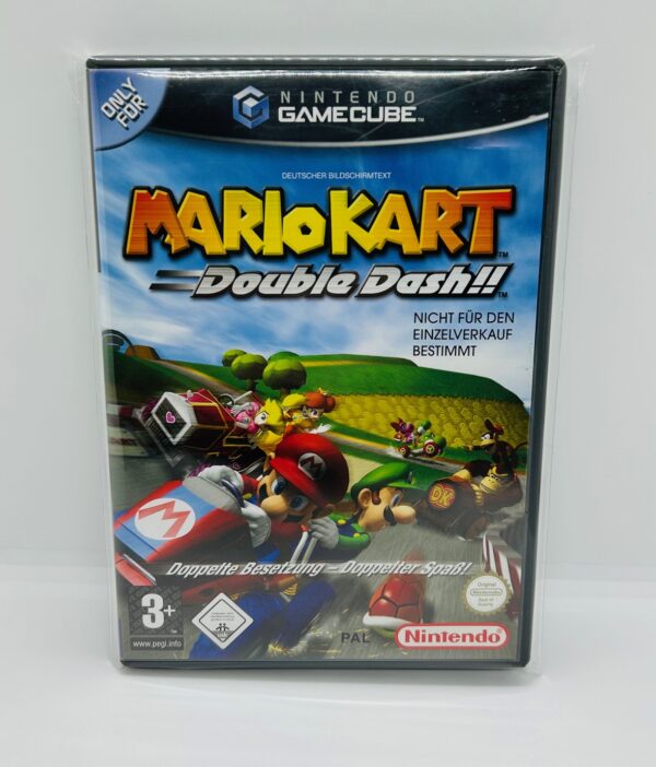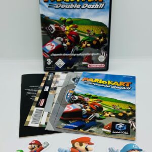 Mario Kart Double Dash!! ist ein exklusives Rennspiel für den Nintendo GameCube, das 2003 erschien. Es bietet ein einzigartiges Koop-Feature, bei dem zwei Fahrer pro Kart zusammenarbeiten einer steuert, der andere nutzt Items. Das Spiel überzeugt mit farbenfrohen Strecken, ikonischen Charakteren aus dem Nintendo-Universum und actiongeladenem Multiplayer-Spaß.
