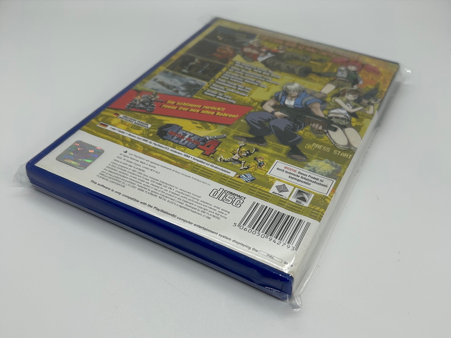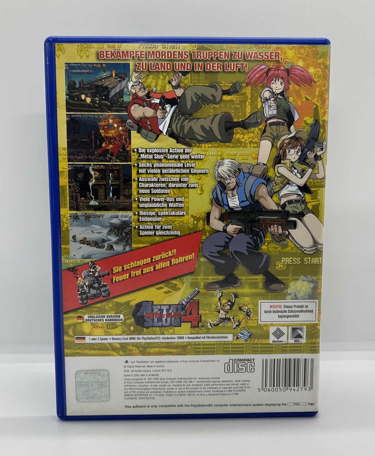 Metal Slug 4 bringt die legendäre Run-and-Gun-Action der Reihe erstmals auf die PlayStation 2. Entwickelt von SNK, setzt der Titel die explosive 2D-Arcade-Tradition mit rasanter Action, detailverliebter Pixelgrafik und einer ordentlichen Portion Humor fort. Die Welt wird von einer neuen terroristischen Organisation bedroht, die sich Zugang zu einem globalen Computernetzwerk verschafft hat. Spieler schlüpfen in die Rollen bekannter Helden wie Marco Rossi oder Tarma Roving und kämpfen sich durch abwechslungsreiche Missionen voller feindlicher Soldaten, mächtiger Bosse und ikonischer Fahrzeuge („Slugs“).