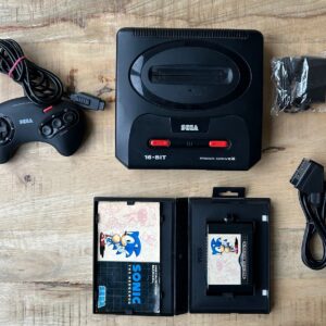 Der Mega Drive Control Pad ist der offizielle Controller für die Sega Mega Drive. Der Controller hat ein markantes, halbkreisförmiges Design, das ergonomisch gestaltet ist, um gut in den Händen zu liegen. Der Controller wird über ein Kabel mit einem 9-poligen Stecker an die Konsole angeschlossen. Der Controller ist für längere Spielsitzungen ausgelegt und bietet eine komfortable Handhabung für verschiedene Spielgenres.