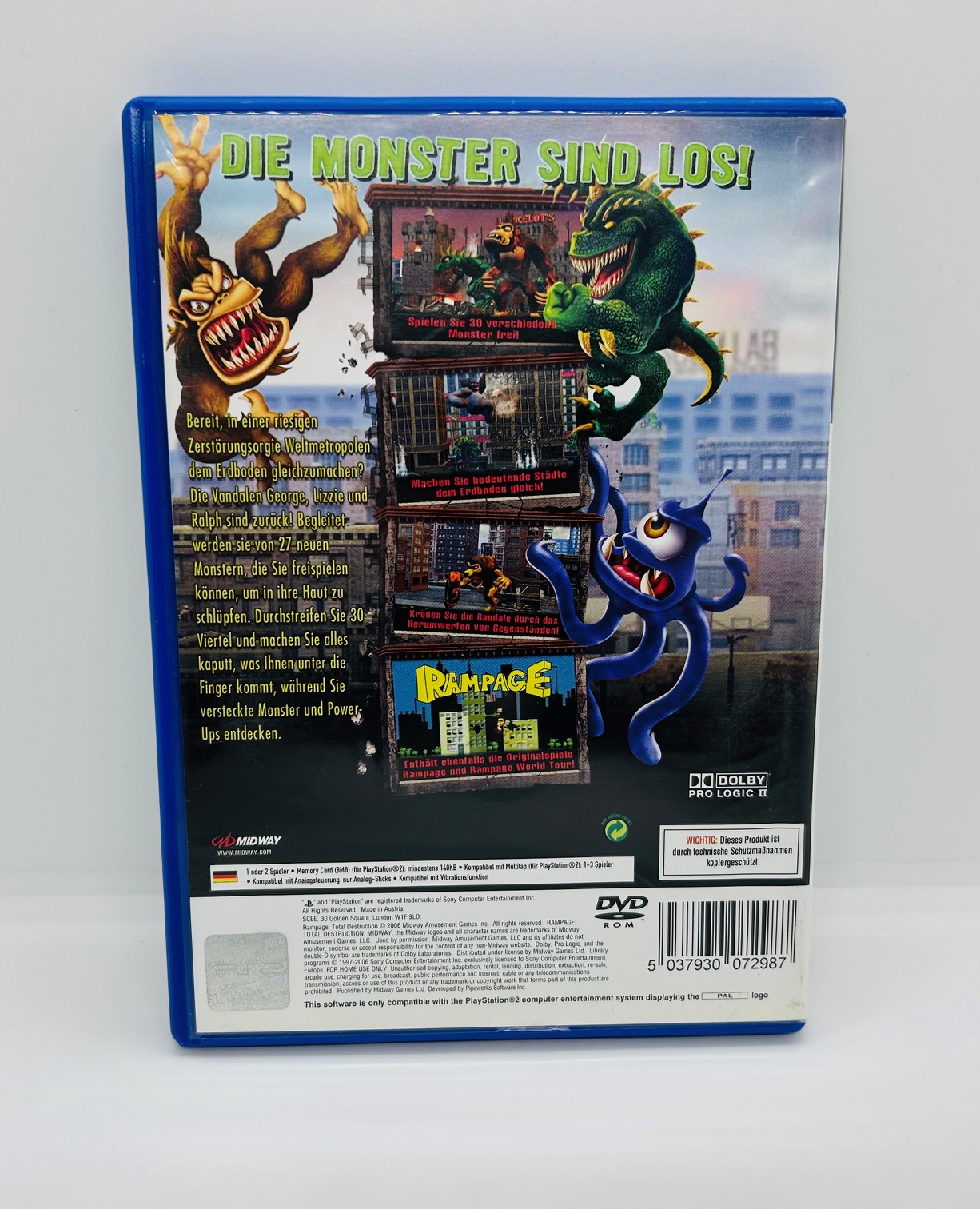 In Rampage: Total Destruction heißt es wieder: Alles klein machen! Wähle eines von über 30 gigantischen Monstern darunter Klassiker wie George, Lizzie und Ralph und hinterlasse eine Spur der Verwüstung rund um den Globus. Ob Wolkenkratzer, Militärbasen oder ganze Städte: Nichts ist vor deinem Zorn sicher. Die Story ist bewusst überdreht und humorvoll gehalten. Nach einem fehlgeschlagenen Experiment der skrupellosen Scumlabs Corporation geraten erneut monströse Kreaturen außer Kontrolle. Als Spieler schlüpfst du in die Rolle dieser Monster und kämpfst dich durch zahlreiche Städte, während du alles zerstörst, was dir in die Quere kommt inklusive gegnerischer Monster, Panzer und Helikopter.