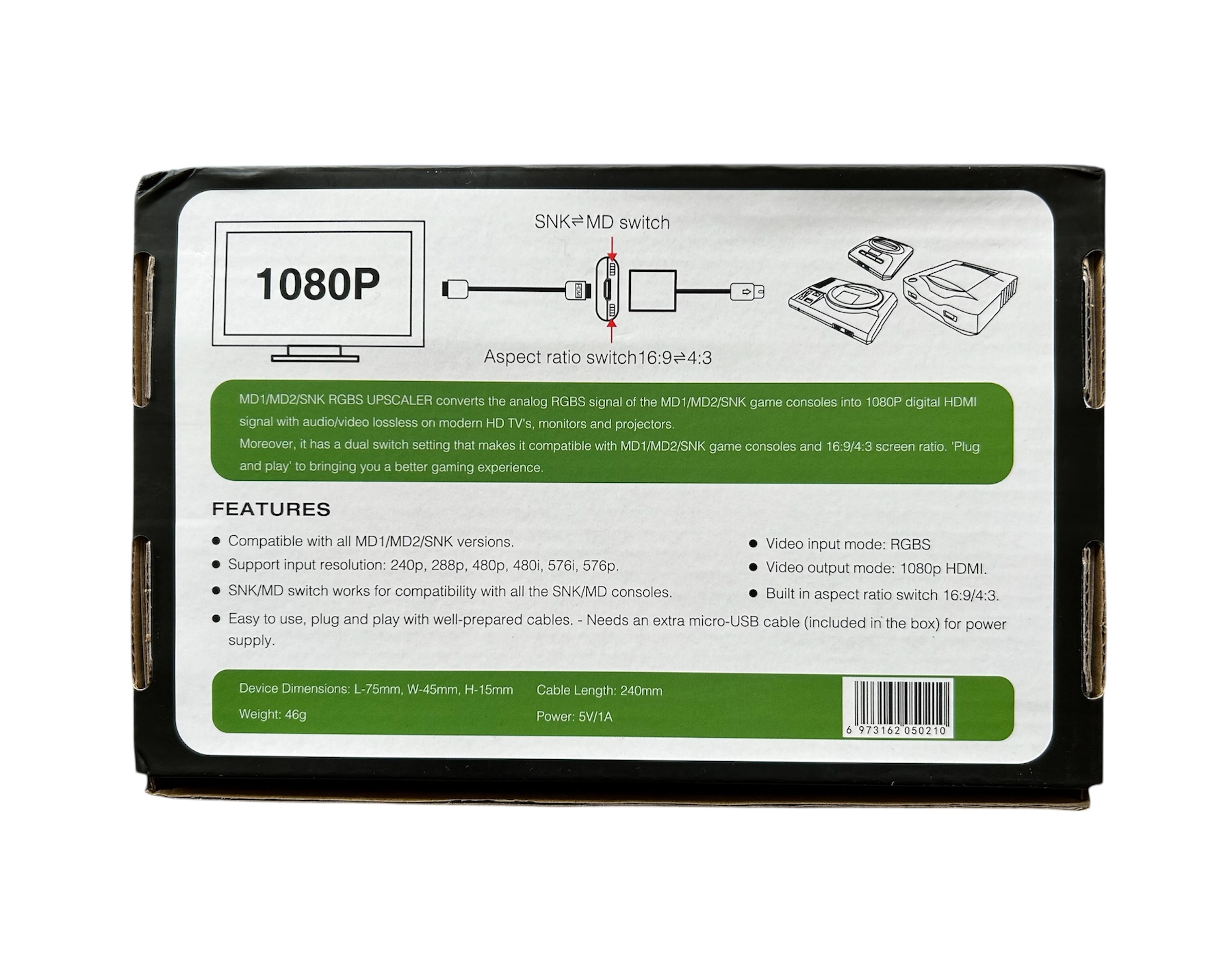 RGBS Upscaler HDMI Adapter 1080P für SEGA Mega Drive 1 & 2 + SNK NEO GEO (Mit HDMI-Kabel)