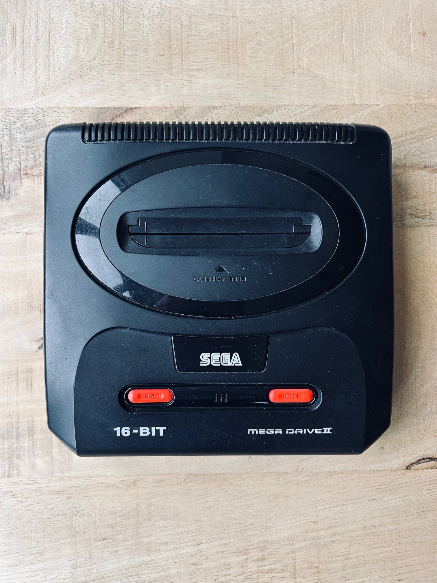 Die Sega Mega Drive 2 ist eine beliebte 16-Bit-Spielekonsole, die in den 1990er Jahren veröffentlicht wurde. Kompakteres Design im Vergleich zum ursprünglichen Mega Drive. Unterstützt eine Vielzahl von Spielen, darunter Klassiker wie Sonic the Hedgehog, Streets of Rage und Golden Axe.