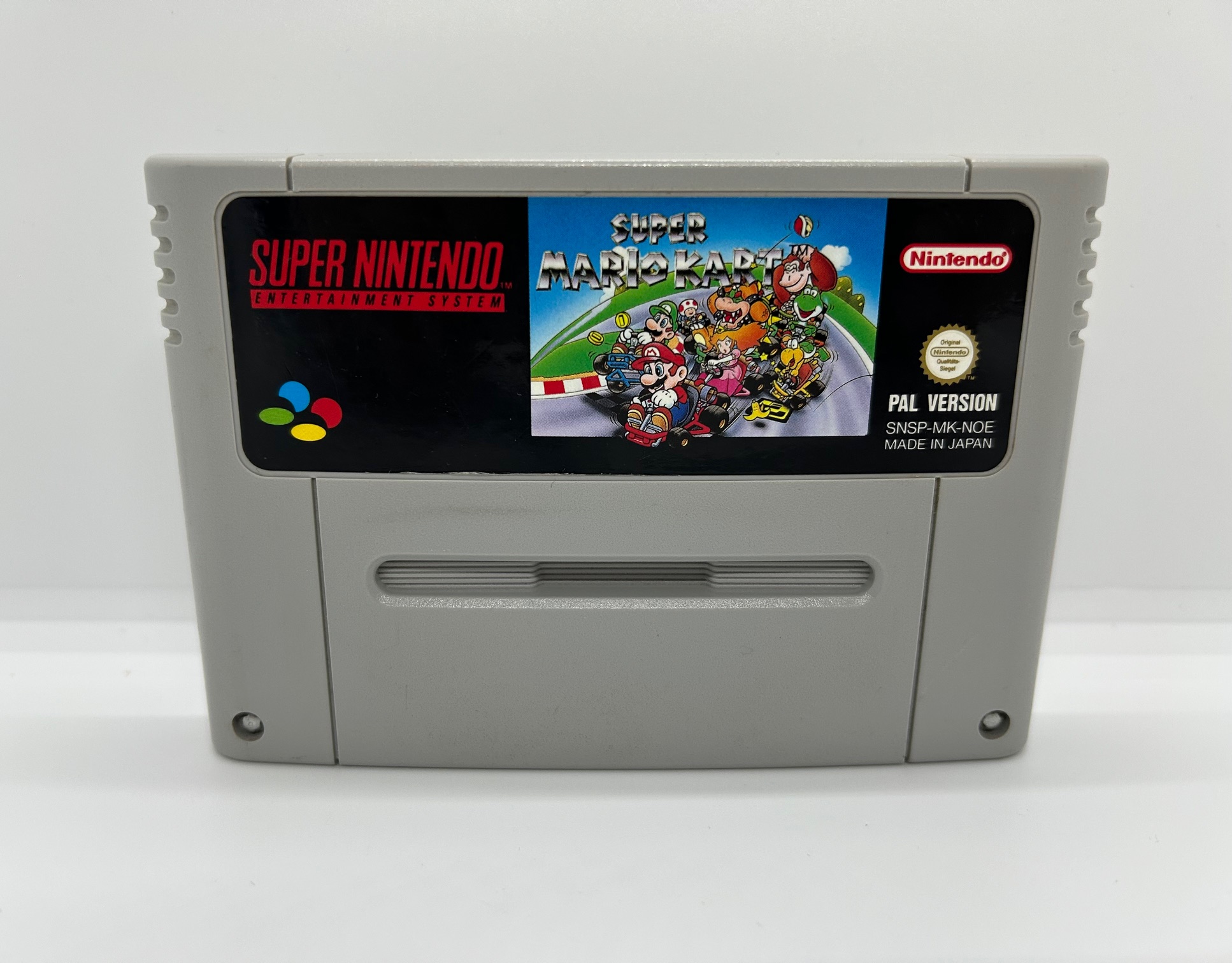 Mach dich bereit für rasante Rennen im Pilz-Königreich! In Super Mario Kart treten Mario, Luigi, Prinzessin Peach, Bowser und viele weitere bekannte Nintendo-Charaktere in actiongeladenen Kart-Rennen gegeneinander an. Fahre über abwechslungsreiche Strecken wie Donut Plains, Bowser’s Castle oder Rainbow Road und setze dabei legendäre Items ein: Bananenschalen, grüne Panzer, rote Panzer und der gefürchtete Blitz sorgen für Chaos und Spannung bis zur Ziellinie. Geschicktes Driften und cleverer Item-Einsatz entscheiden über Sieg oder Niederlage. Ob im Grand-Prix-Modus, Time Trial oder im Mehrspieler-Duell Super Mario Kart bietet zeitlosen Spielspaß und ist ein Meilenstein der Videospielgeschichte. Ein absolutes Muss für Retro-Fans und Nintendo-Sammler!
