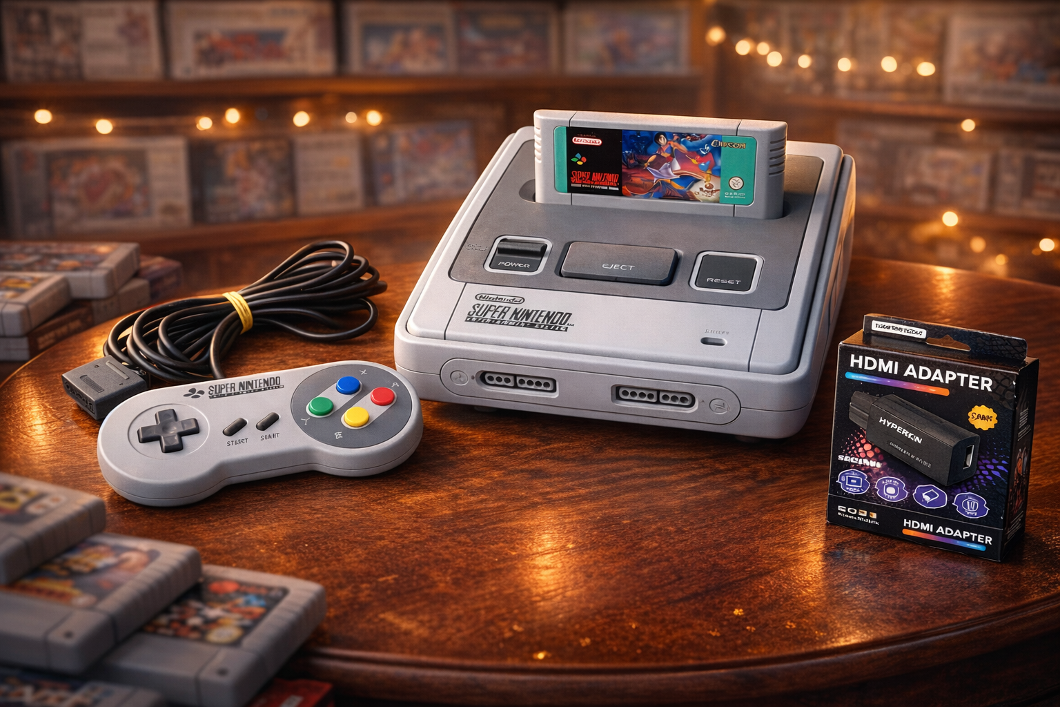 Super Nintendo SNES Konsole mit HDMI + Original Controller + Aladdin Spiel (SET)