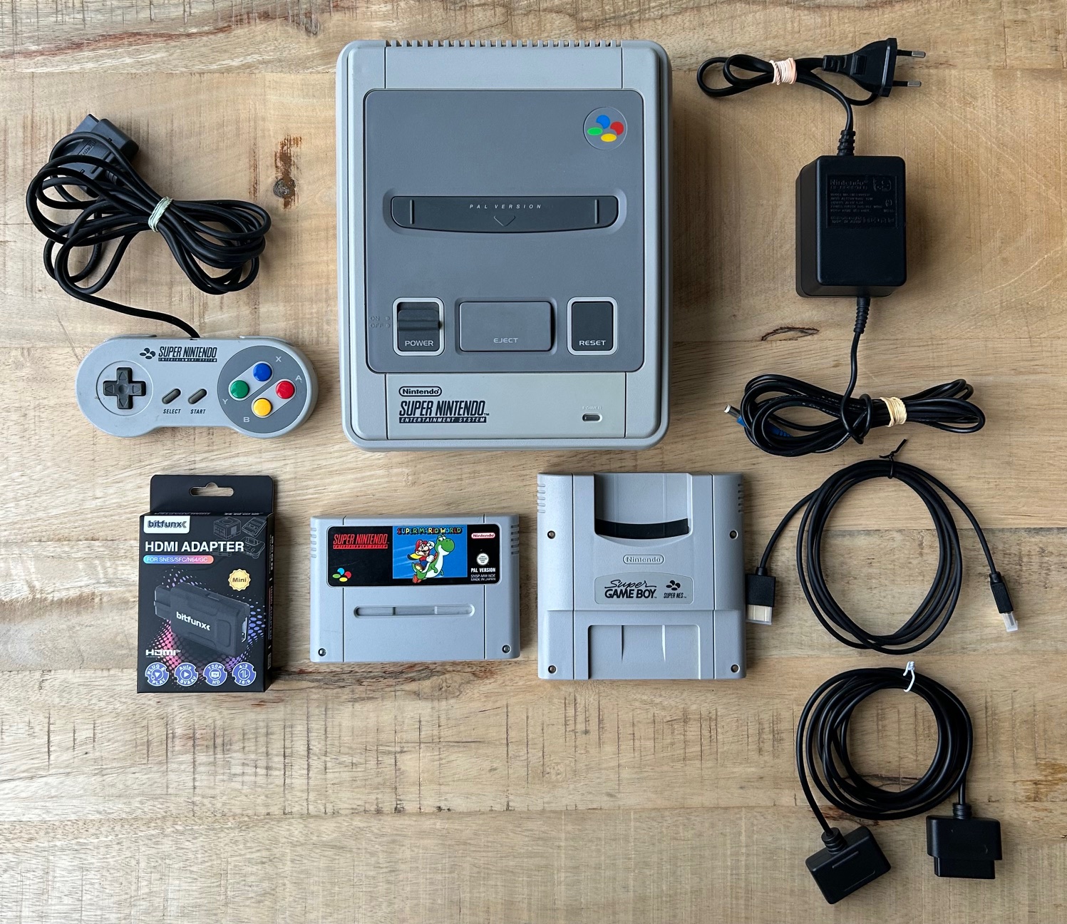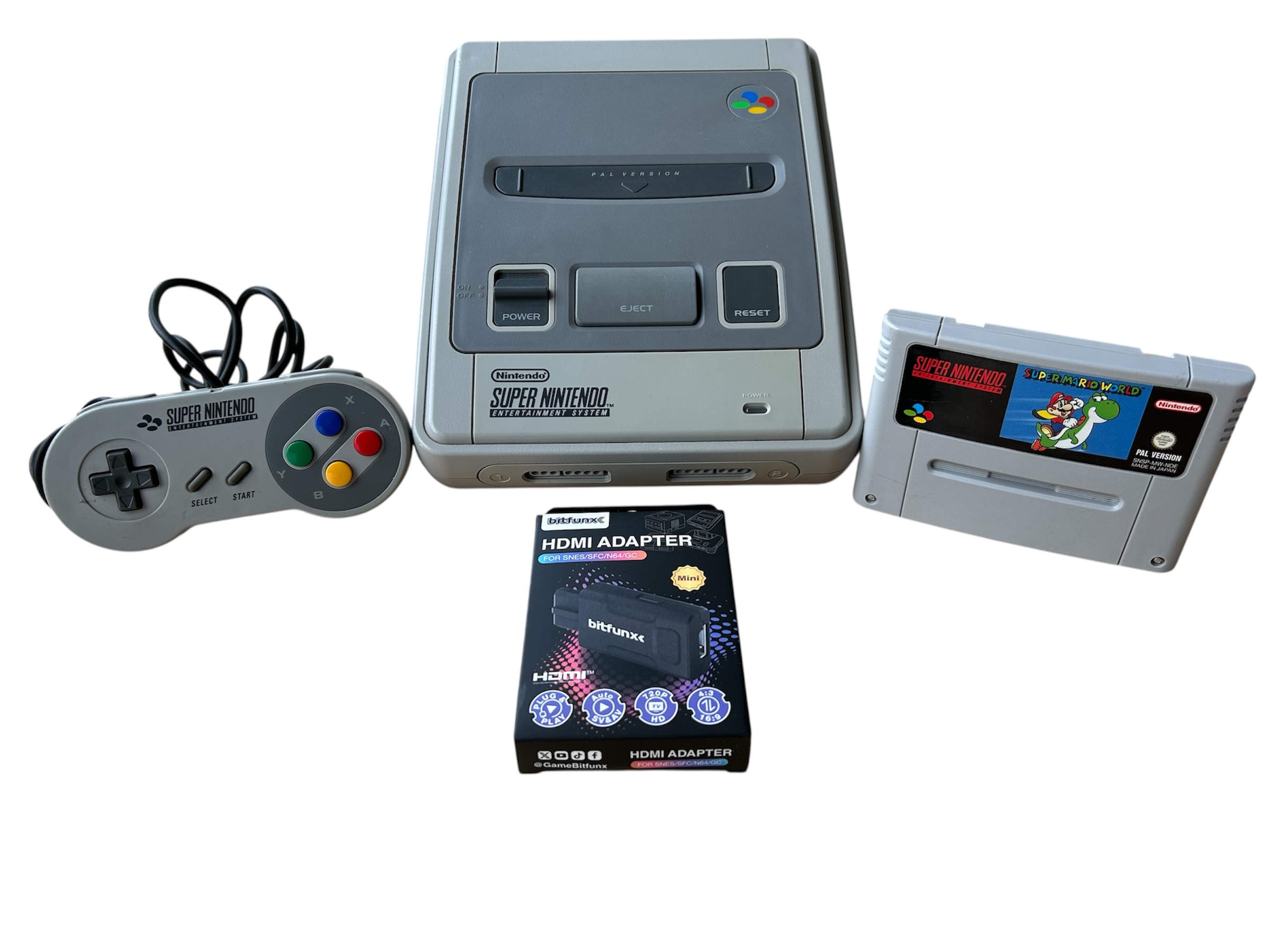 Super Nintendo SNES Konsole mit HDMI + Original Controller + Super Mario World