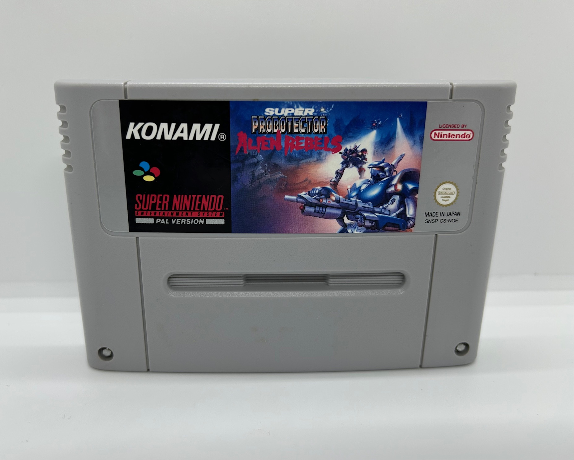 Super Probotector: Alien Rebels (SNES) ist ein actiongeladener Run-and-Gun-Shooter, der dich mitten in einen intergalaktischen Krieg katapultiert. Eine gnadenlose Alien-Armee, die Alien Rebels, bedroht die Menschheit und nur die Elitekämpfer der Probotector-Einheit können sie aufhalten.