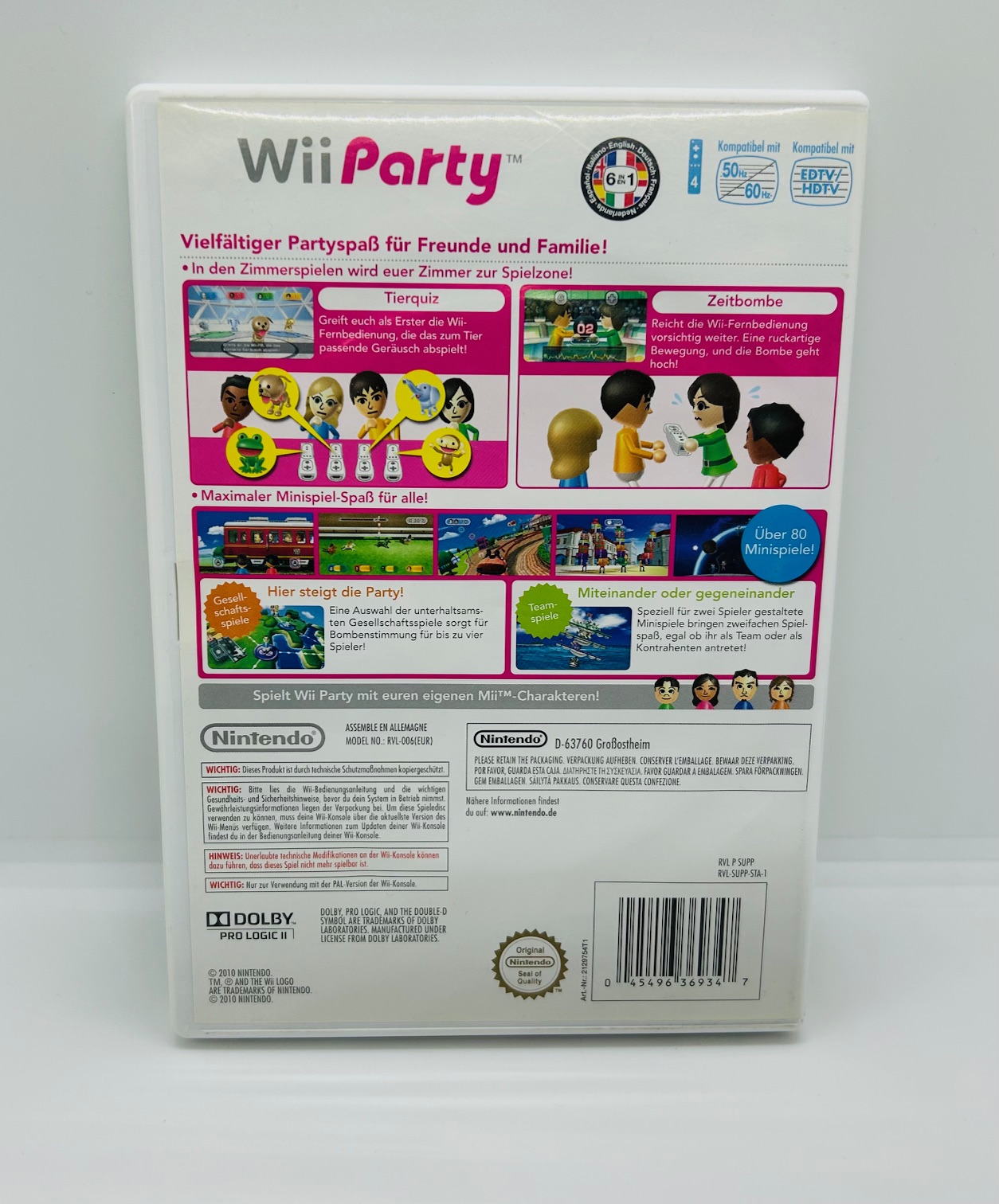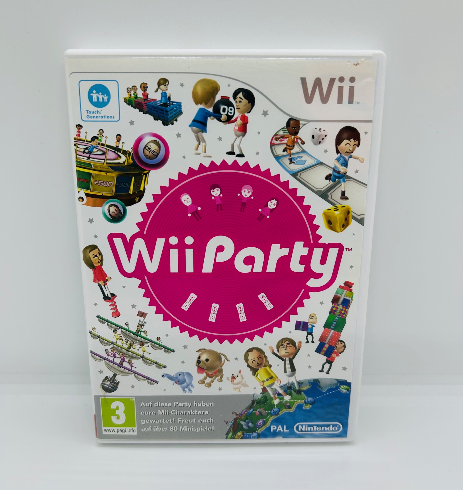 Wii Party ist ein geselliges Partyspiel für die Nintendo Wii, bei dem Spaß, Abwechslung und gemeinsames Spielen im Mittelpunkt stehen. Bis zu vier Spieler treten in einer Vielzahl von Minispielen gegeneinander an oder spielen im Team entweder mit nur einer Wii-Fernbedienung pro Person oder sogar abwechselnd mit nur einem Controller. Ob Geschicklichkeit, Reaktion oder Glück: Die leicht verständlichen Spiele sorgen für schnelle Erfolgserlebnisse und jede Menge Lacher. Unterschiedliche Spielmodi wie das Spielbrett-Abenteuer, Haus-Party-Spiele oder Paar-Wettbewerbe machen Wii Party zum idealen Spiel für Familien, Freunde und Spieleabende jeder Art.